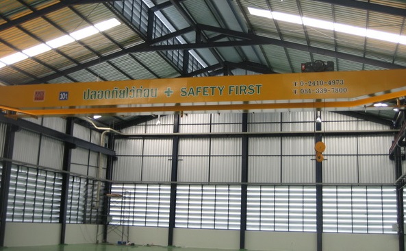 รับติดตั้งเครนไฟฟ้า เครนโรงงานรางเดี่ยว หรือเครนแบบคานเดี่ยว (Single Girder Crane) เหมาะกับโรงงานอุตสาหกรรมที่ใช้ยกน้ำหนักไม่มาก โครงสร้างตัวเครนมีน้ำหนักเบา มีความกว้างใช้งานตั้งแต่ 6 - 25 เมตร มีน้ำหนักยกตั้งแต่ 0.1 ตัน ถึง 12.5 ตัน สามารถเคลื่อนที่ยกวัตถุได้ชิดซ้าย-ขวา ได้มากขึ้น ระยะปลอดภัยอยู่ที่ประมาณ 1/6 ของความกว้างชุดเครนเท่านั้น